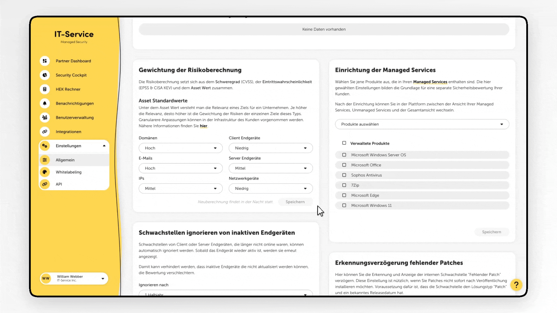 Mit diesem Release können Sie festlegen, welche Produkte Teil Ihrer Managed Services sind. Darauf basierend lassen sich Sicherheitsbewertungen zusätzlich in den Ansichten „Managed Services“ und „Unmanaged Services“ anzeigen – verfügbar in allen relevanten Bereichen der Plattform. Außerdem wurden die Scan-Geschwindigkeit des Agents deutlich verbessert, die Plattform beschleunigt und mehrere Fehler in der Bewertung und Darstellung behoben.