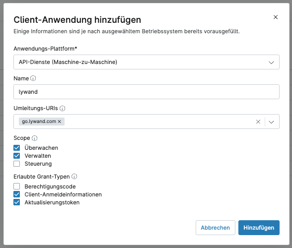 Geben Sie den Namen der internen Integration an (z.B. "lywand").