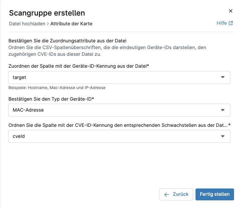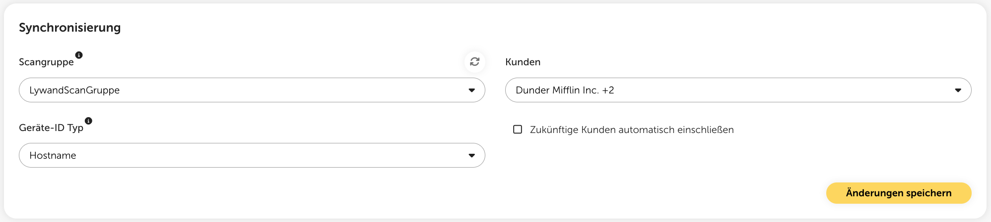Wählen Sie die gewünschte Scangruppe, den Geräte-ID Typ "MAC-Adresse” sowie die Kunden aus, deren Schwachstellen synchronisiert werden sollen und speichern Sie die Änderungen.