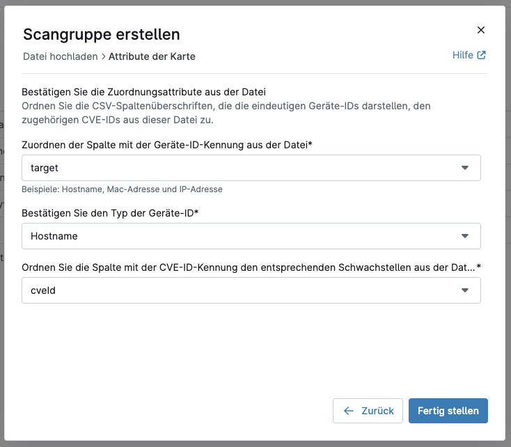 Wählen Sie die gewünschte Scangruppe, den Geräte-ID Typ "Hostname” sowie die Kunden aus, deren Schwachstellen synchronisiert werden sollen und speichern Sie die Änderungen.