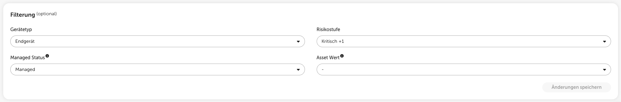 Mit der optionalen Filterung können Sie bestimmen, welche Schwachstellen aus Lywand an NinjaOne übertragen werden. Sie haben die Möglichkeit, nach Gerätetyp, Managed-Status, Risikostufe oder Asset-Wert zu filtern, um beispielsweise nur kritische und hohe Schwachstellen auf managed Endgeräten zu synchronisieren.