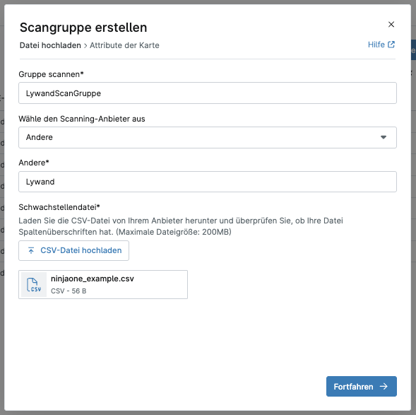 Erstellen Sie eine neue Scangruppe, die für die Synchronisierung der Schwachstellen verwendet werden soll.