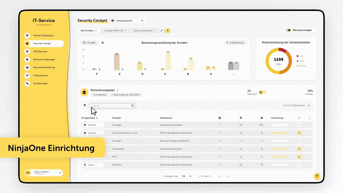 Dieses Release erweitert unsere Plattform um die neue NinjaOne-Integration und ermöglicht erstmals eine zeitsparende Bulk-Planung von Maßnahmen direkt aus den Schwachstellendetails.