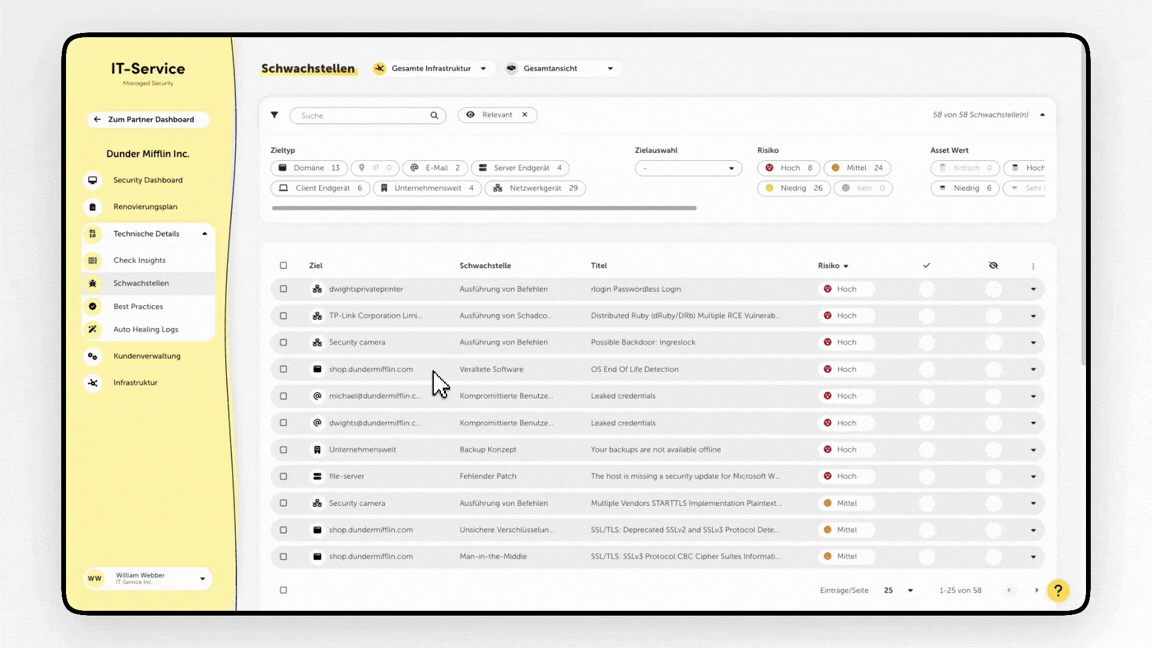 Maßnahmen können nun direkt in den Schwachstellendetails per Bulk-Aktion für mehrere Schwachstellen gleichzeitig geplant werden.