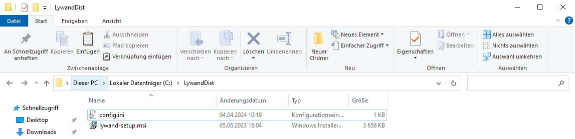 Die Installationsparameter können auch mithilfe einer Konfigurationsdatei angegeben werden. Dazu muss lediglich eine config.ini Datei im selben Ordner wie lywand_setup.msi abgelegt werden.