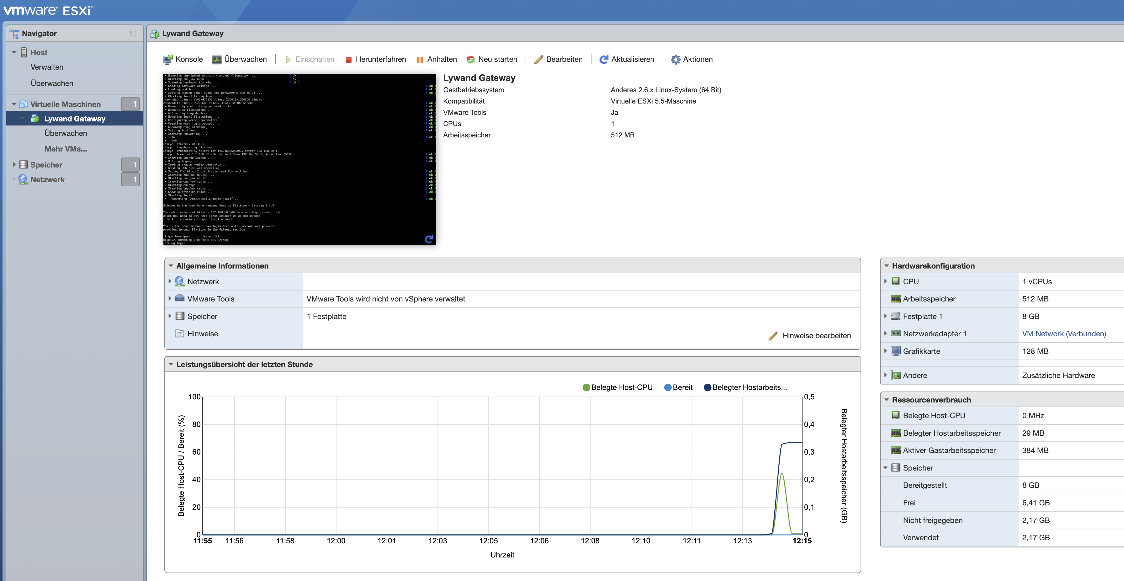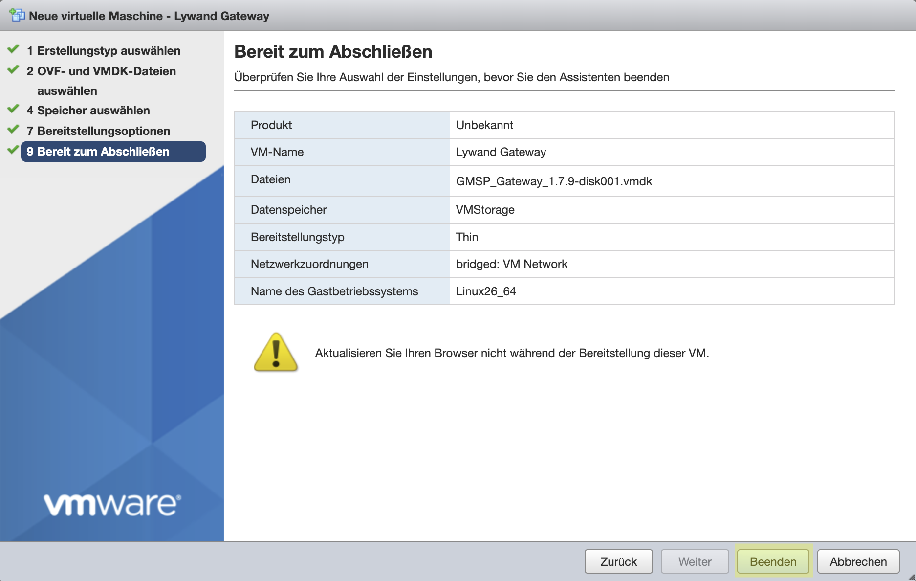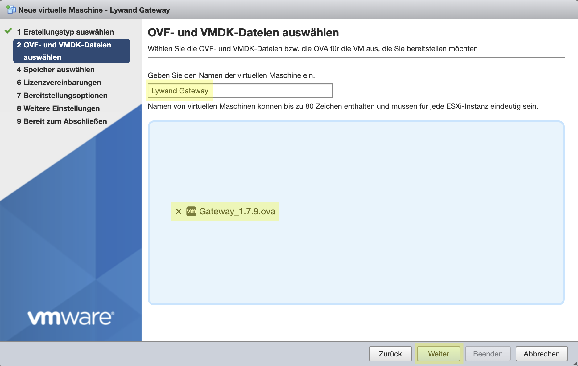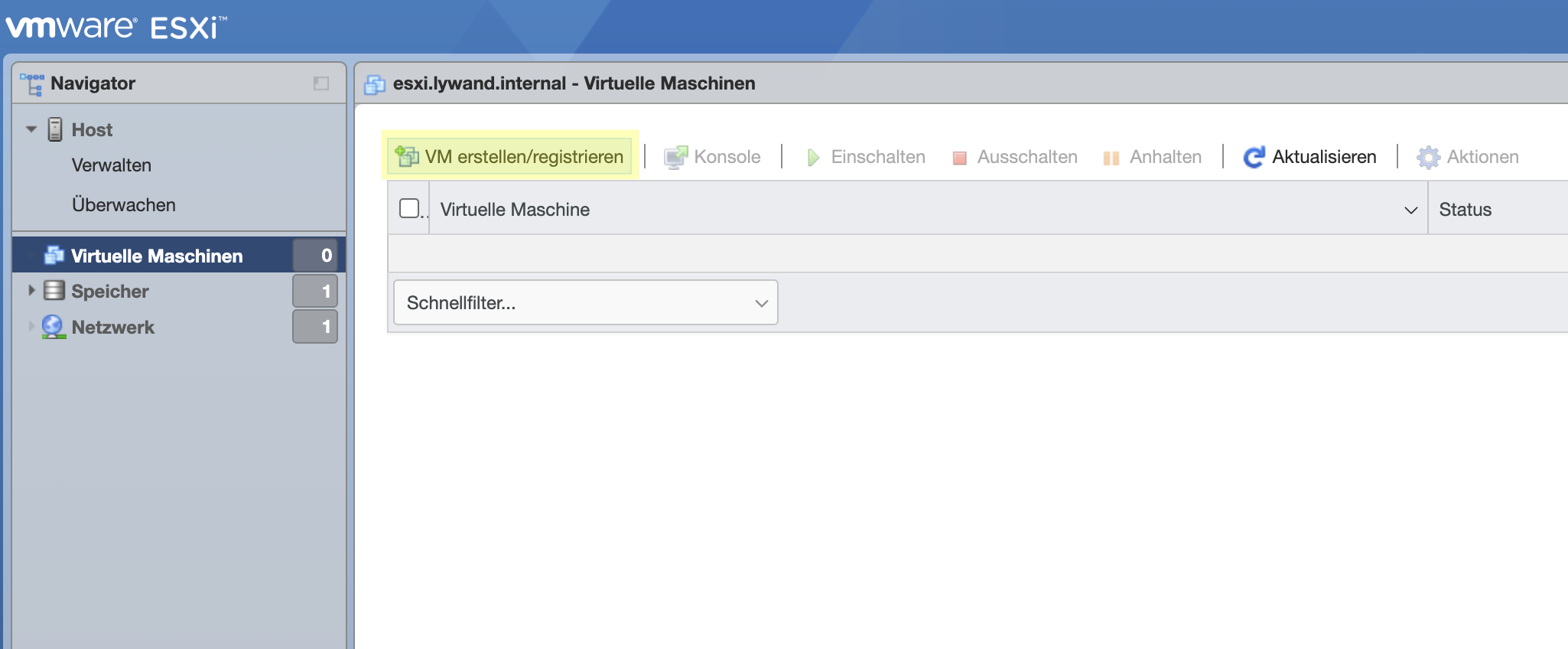 ESXi VM Speicher und VM Netzwerke für das Gateway verfügbar