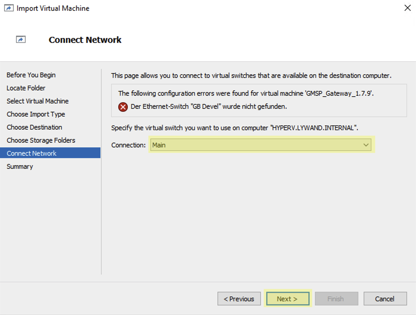 Gateway Image (ZIP) heruntergeladen und auf HyperV Host verfügbar!