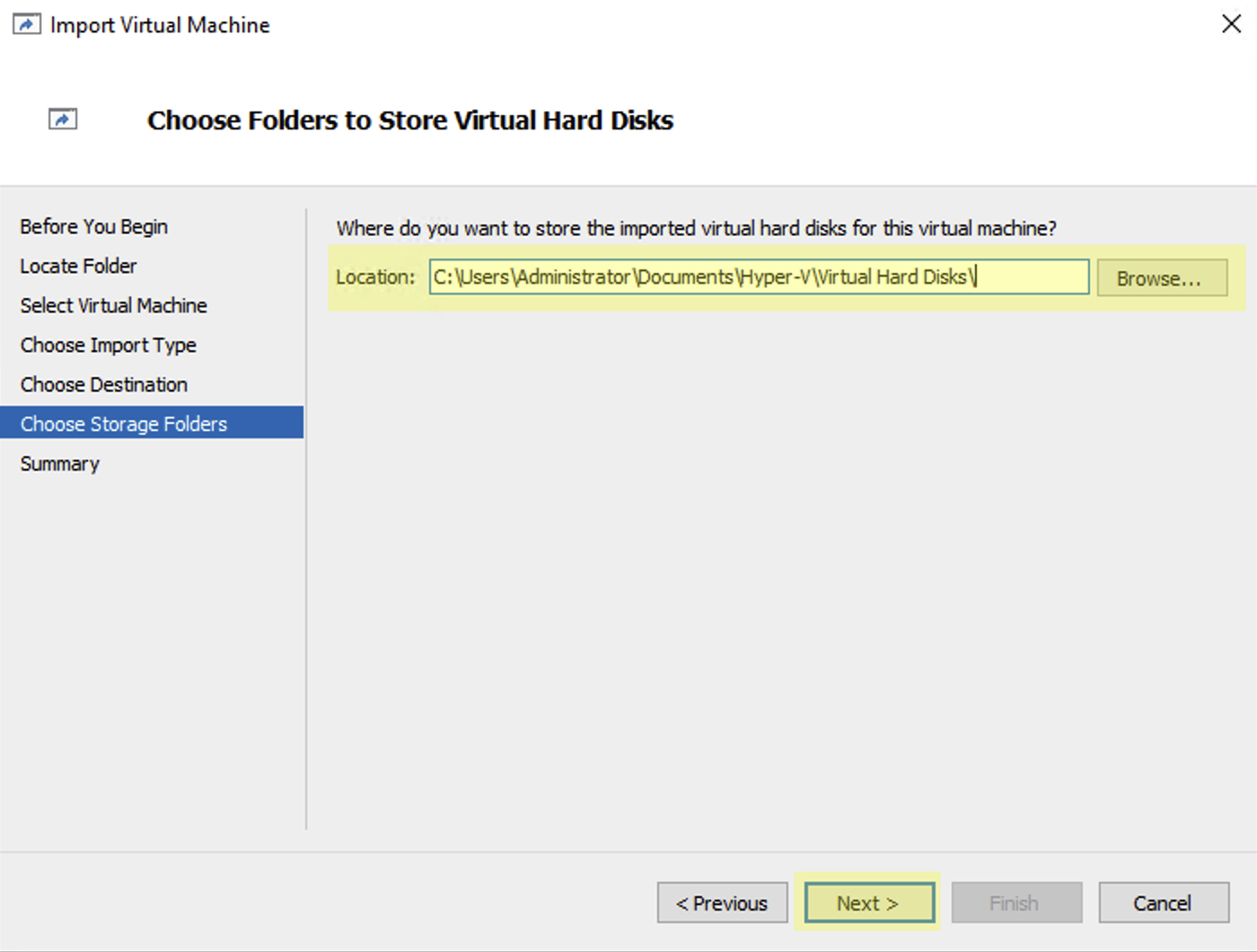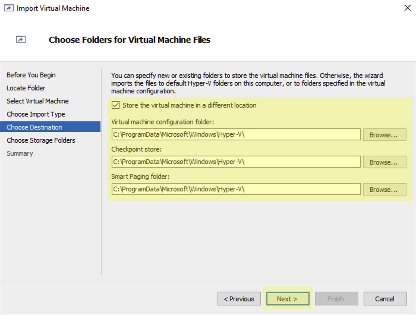 Gewünschten VM Speicherort für zusätzliche Daten auswählen