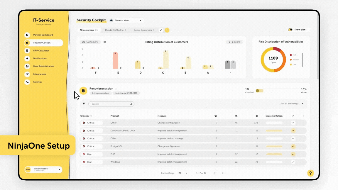 This release expands our platform with the new NinjaOne integration and, for the first time, enables time-saving bulk planning of measures directly from the vulnerability details.