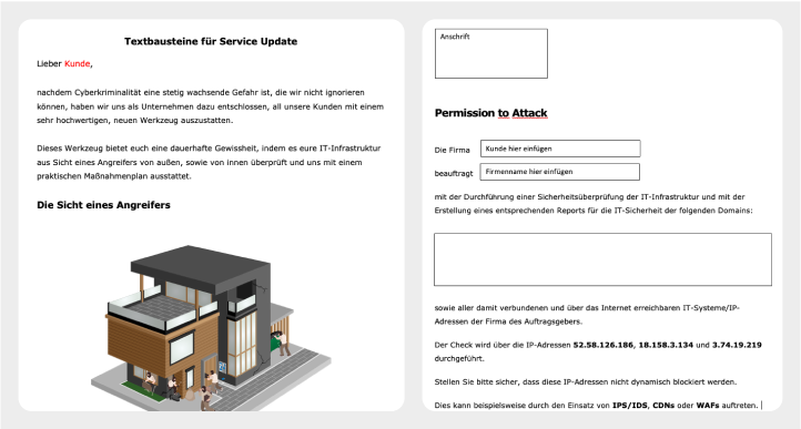 Depending on your level of service, you may also need permission to verify your customers. Our template “Permission to Attack” is available to you for this purpose.