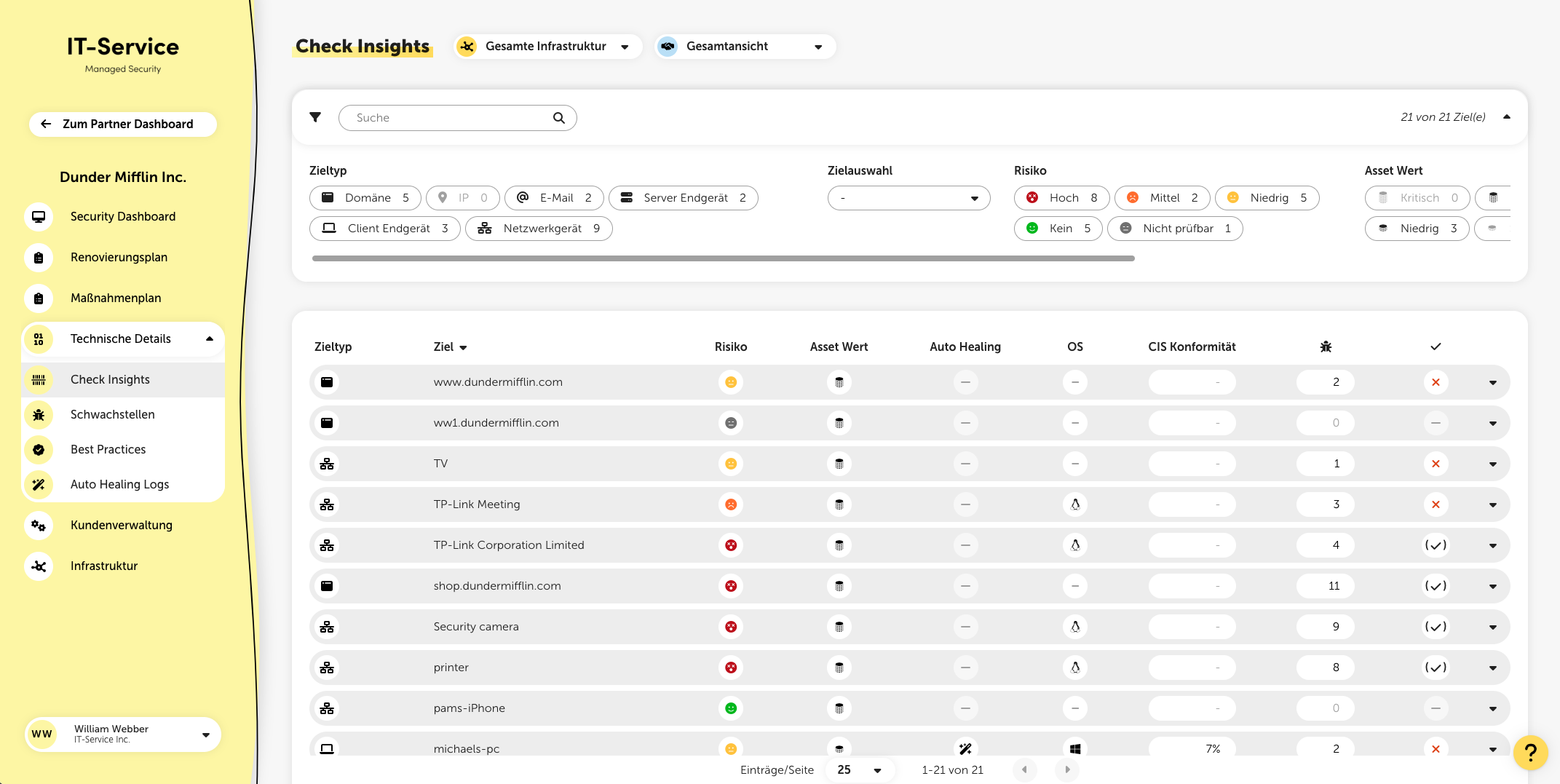 The Check Insights give you useful info about each target and the security checks done on them. This menu item is especially insightful to get a look at the current status of the checked targets.