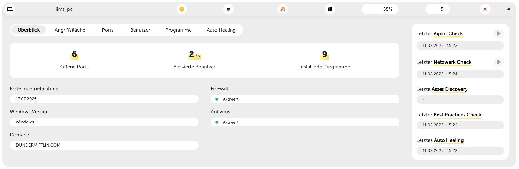 If Auto Healing is enabled for the customer, a corresponding indicator in the form of a magic wand is shown here. For targets that need a restart to finish installing updates, this indicator turns orange.