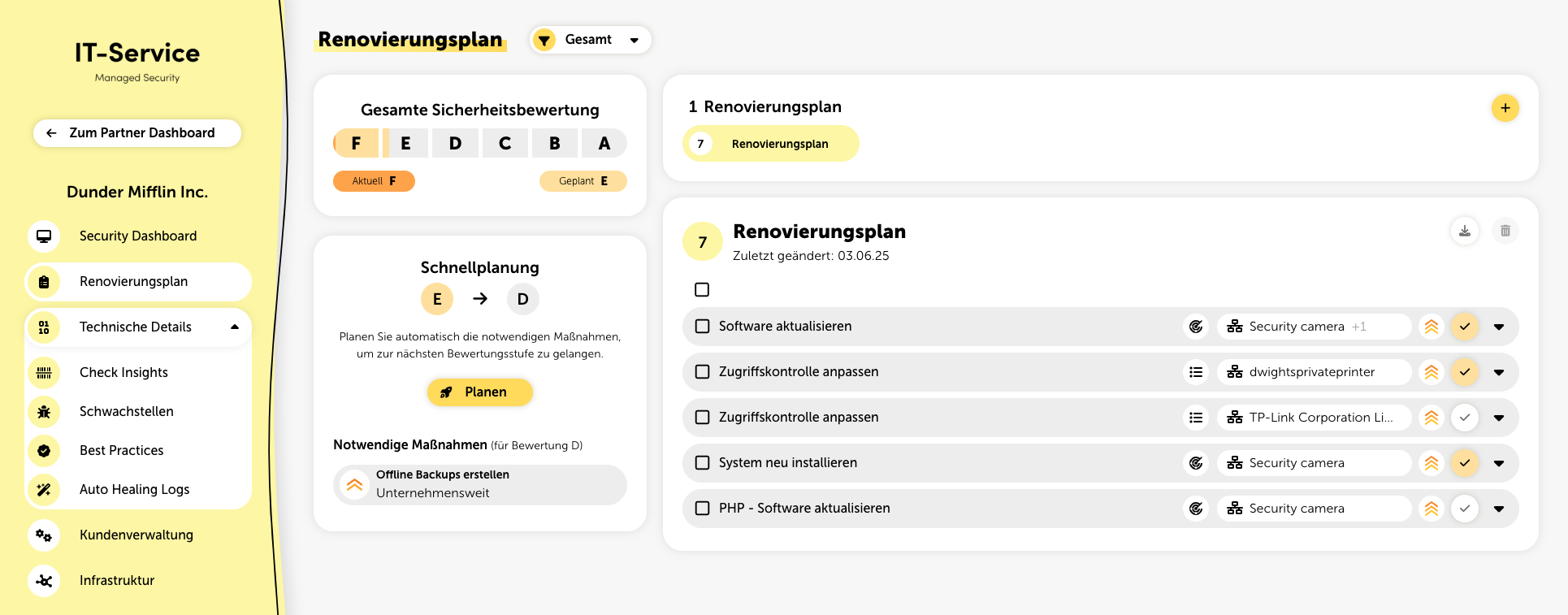 With quick planning, all the measures needed to reach the next higher score are automatically added to the renovation plan. This means the weaknesses with the highest risk are planned first.