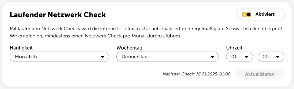 You can also enable ongoing network checks to have your internal IT infrastructure automatically and regularly checked for vulnerabilities.