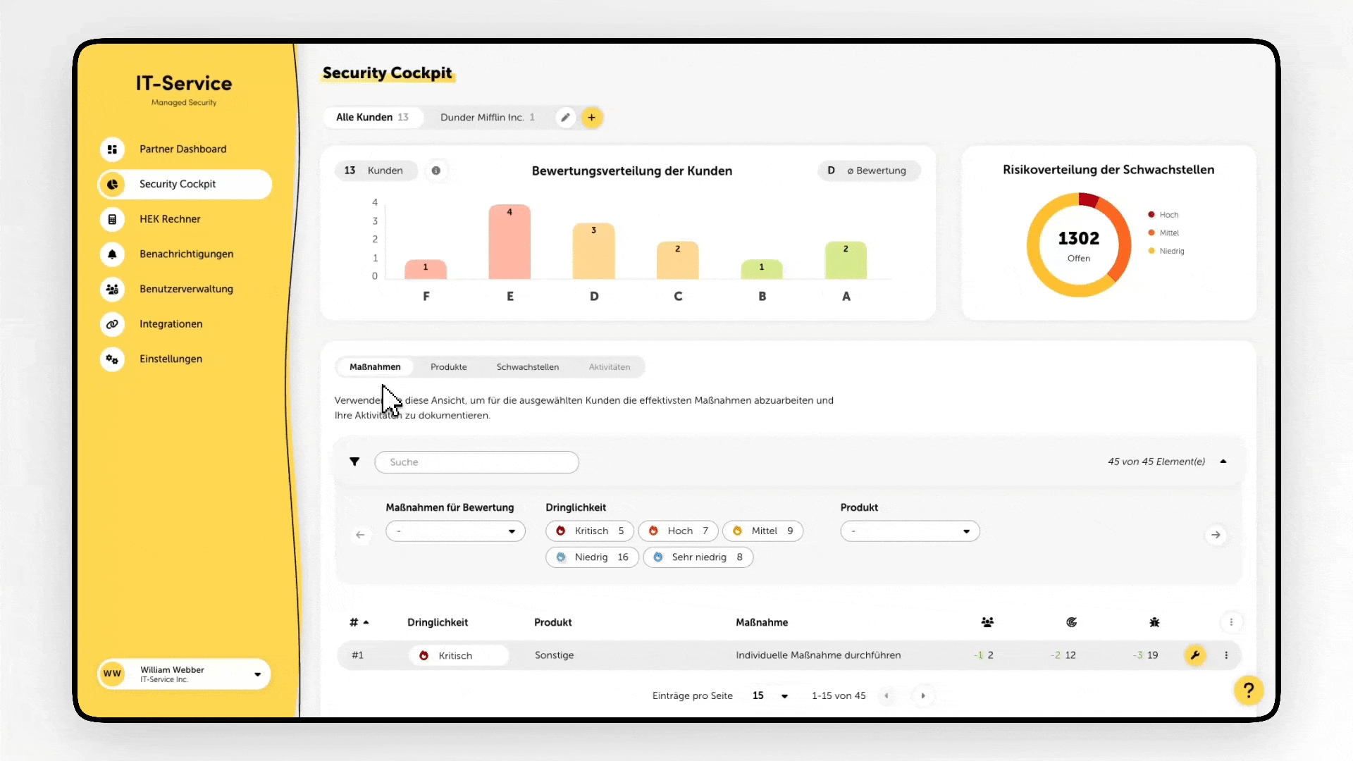 Also new in the Security Cockpit is the “Products” tab. This shows an overview of the most vulnerable products in your customers’ IT environments.
