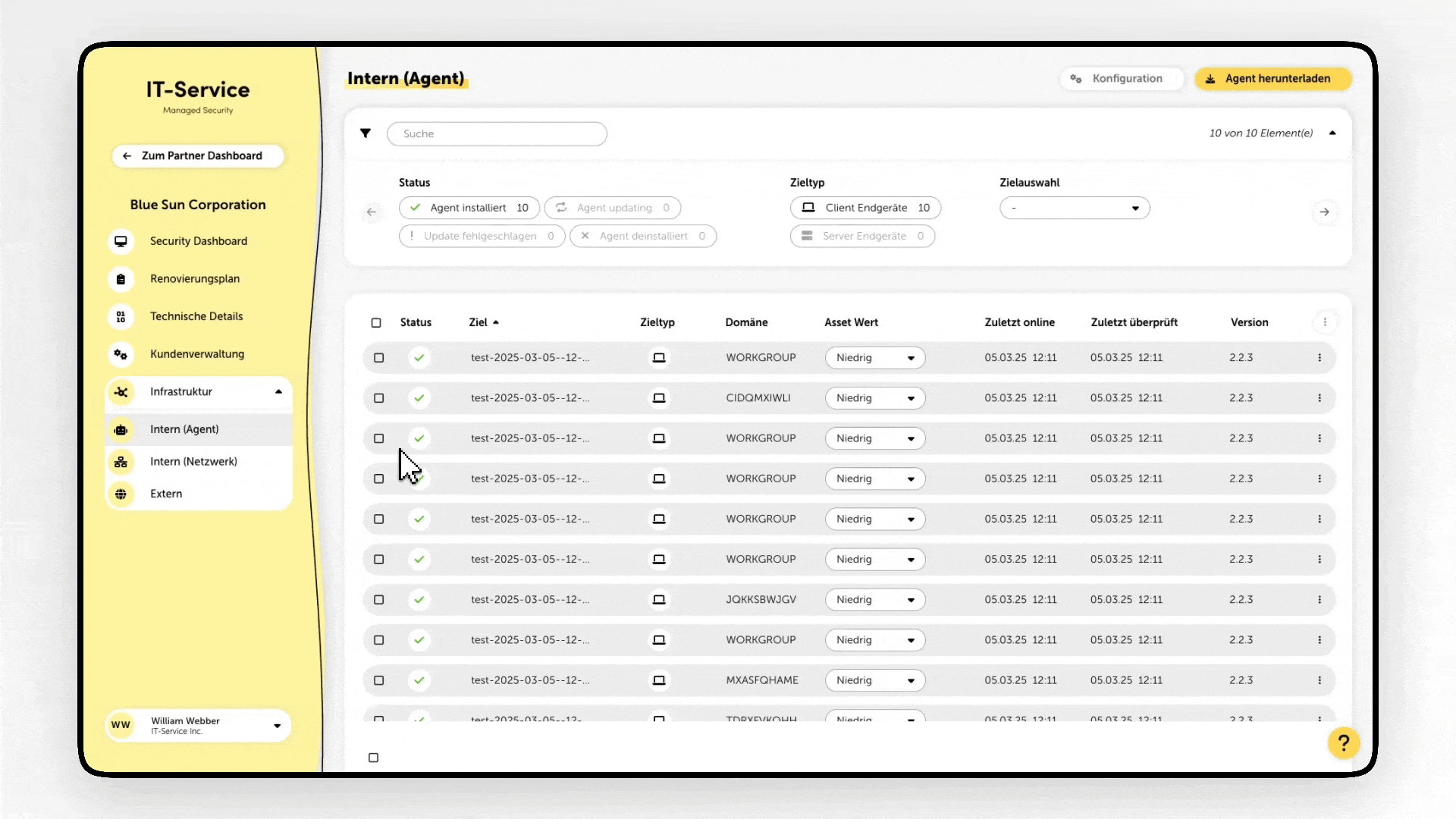 On the “Infrastructure > Internal (Agent)” page, you can now also start an Agent Check for several targets at the same time using a bulk action.