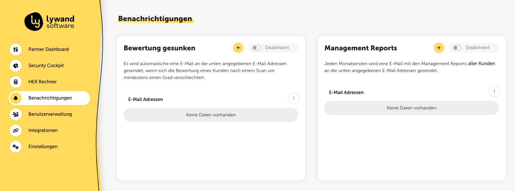 Gli indirizzi email definiti ricevono automaticamente un'email non appena la valutazione di un cliente si abbassa almeno di un grado.